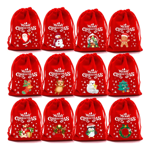 Gratis Voorraad Monster Kerst Trekkoord Cadeau Fluwelen Tassen Kleine Kerstman Fluwelen Trekkoord Zakje Snoep Snack Inpaktas Voor Feest